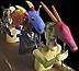 Carnival by Carlos Zapata. Small edition. Vibrant piece depicting four carnival goers in masks. |