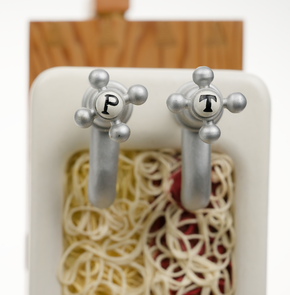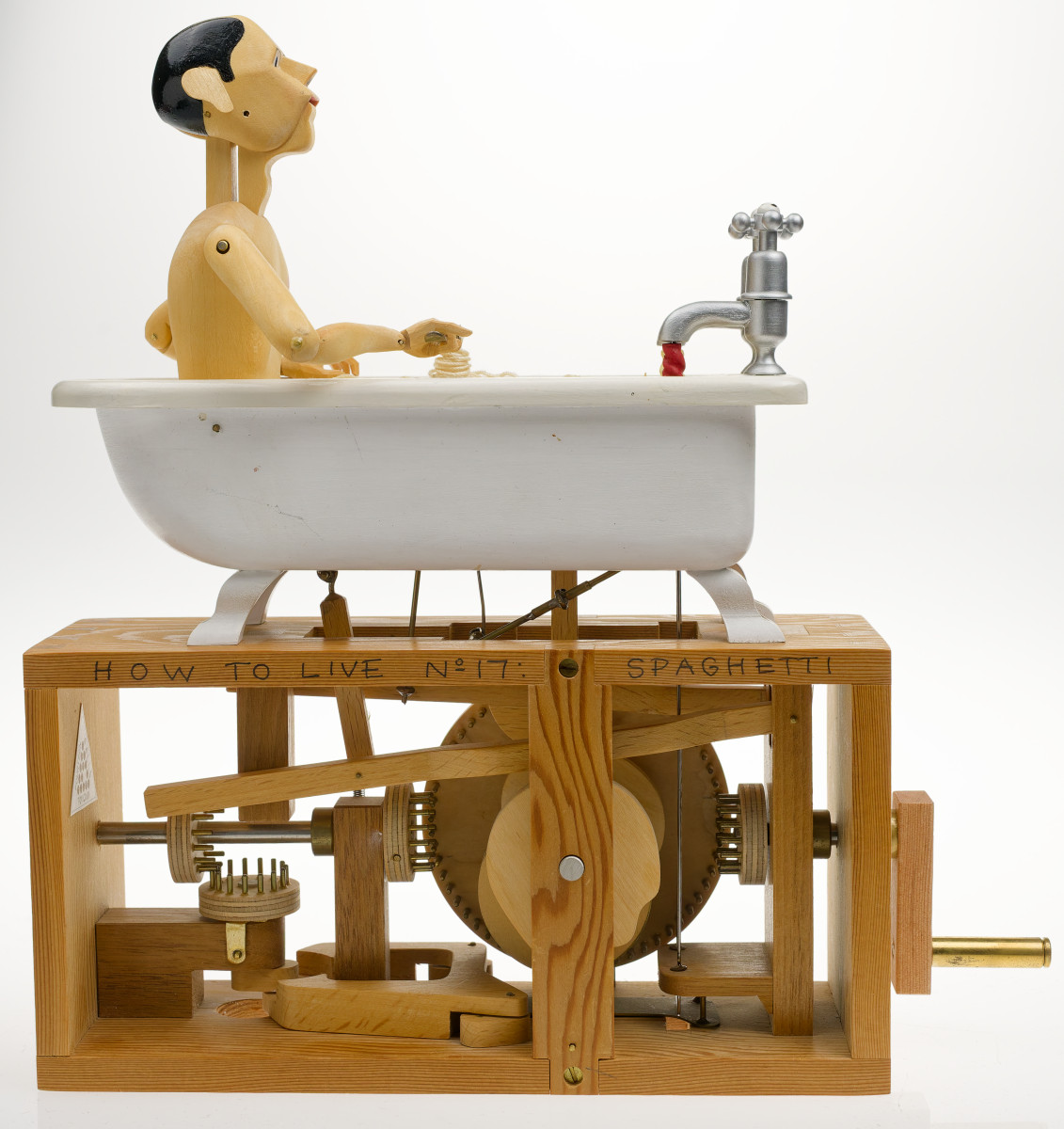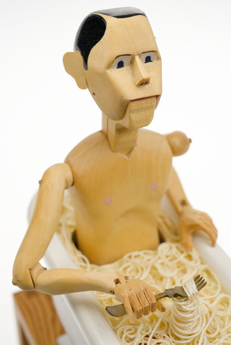 How to Live No. 17 Spaghetti. This man eating spaghetti in the bath is one of the most recognised pieces in the CMT collection. The original was part of the iconic Covent Garden display and the editions are a popular part of our touring exhibitions. This is a rare opportunity to add one to your own collection.